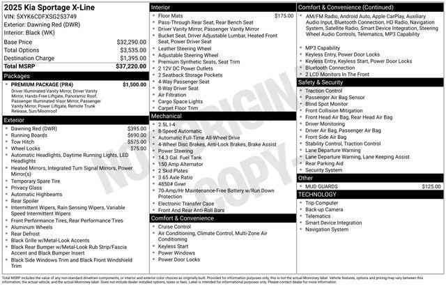 Whether you're seeking a versatile family hauler, a capable adventure vehicle, or a stylish daily commuter, this 2025 Kia Sportage X-Line is an exceptional choice that checks all the boxes. Schedule a test drive today and experience the exceptional value and quality that this vehicle has to offer.